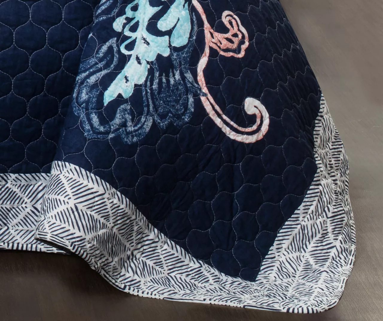 An elegant floral print in blue and pink hues brings a touch of garden elegance to your sleep space, while the breathable cotton construction keeps you cozy and comfy through the night.