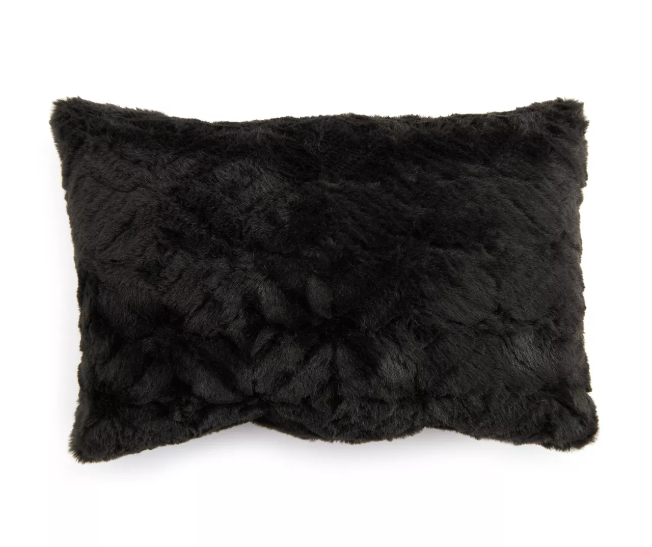 Toss a touch of luxurious texture on your bed, sofa or accent chair with this lush faux fur pillow offered in solid black color with a subtle diamond lattice design. The plush filling provides comfort and support wherever you need it, and the design is filled and finished in the USA.
