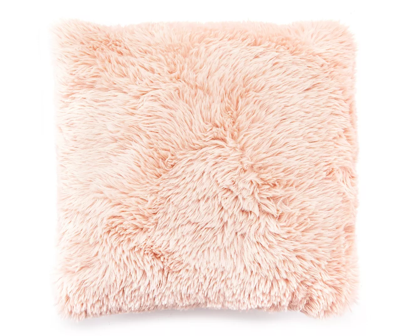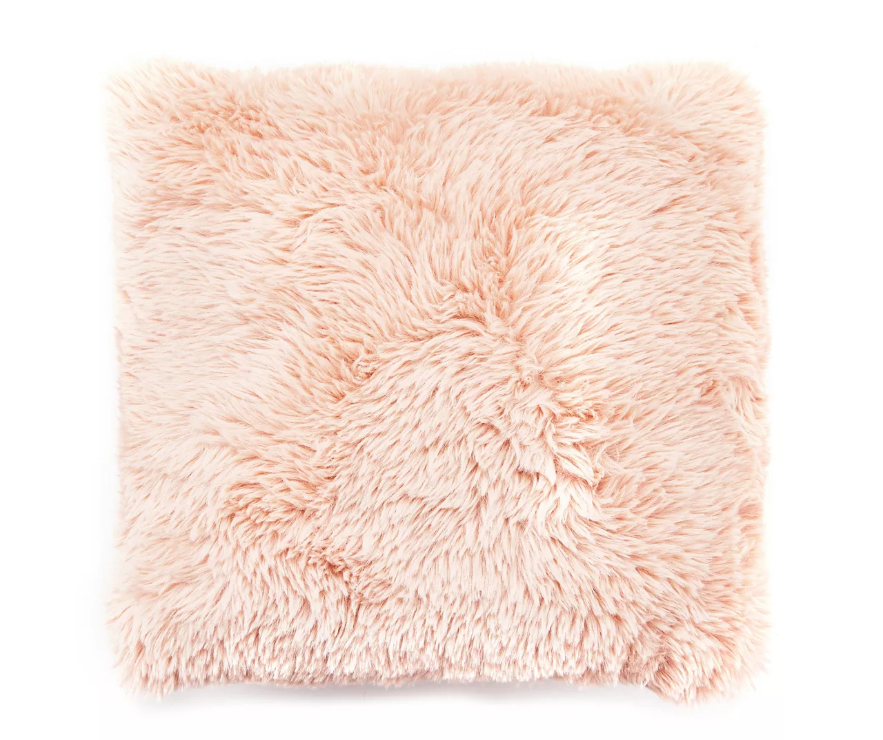 With lush faux fur shag, a lovely blush color and simple style, this plush throw pillow brings comfort and elegant flair to your bedroom or living space.