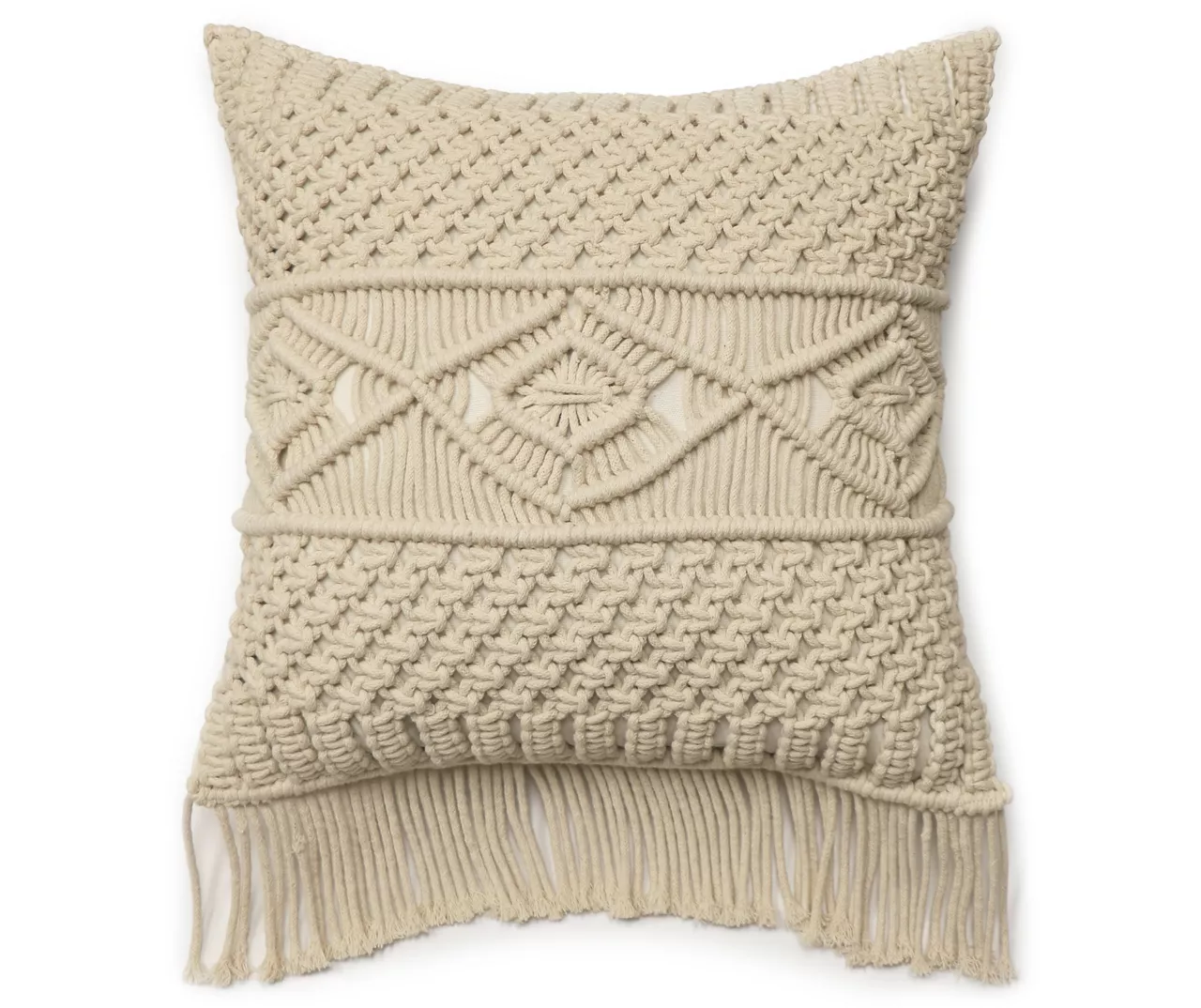 Create a boho chic vibe in any space when you place this throw pillow on a accent chair or sofa. The fringe bottom and weave inlay creates a textured feel and eye-catching look.