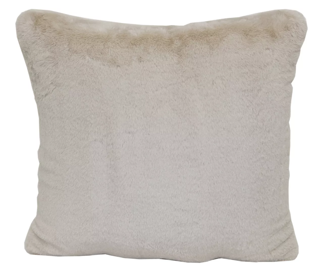 Add a luxe accent to your living space with this plush throw pillow featuring soft faux fur fibers in a versatile oatmeal-beige hue. It brings modern style and comfort to a favorite sofa, seat or bed.