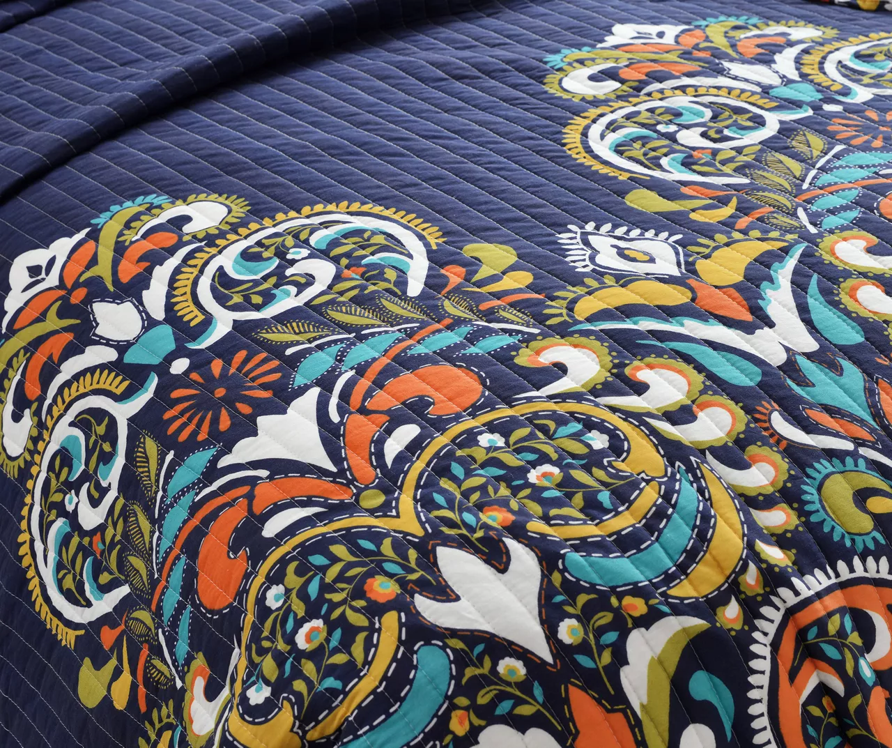 Green and blue blossoms and paisley accents bring botanical boho appeal to this vibrant quilt set from Lush Decor that brings colorful personality into your sleep space. It features neat rows of quilting crafted from breathable cotton to keep you cozy through the night. The reversible quilt design features a bright floral print on solid white for twice the styling options.