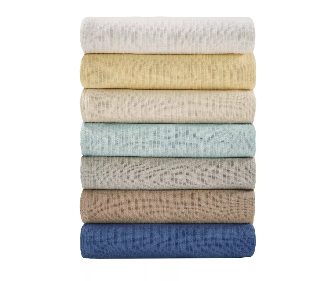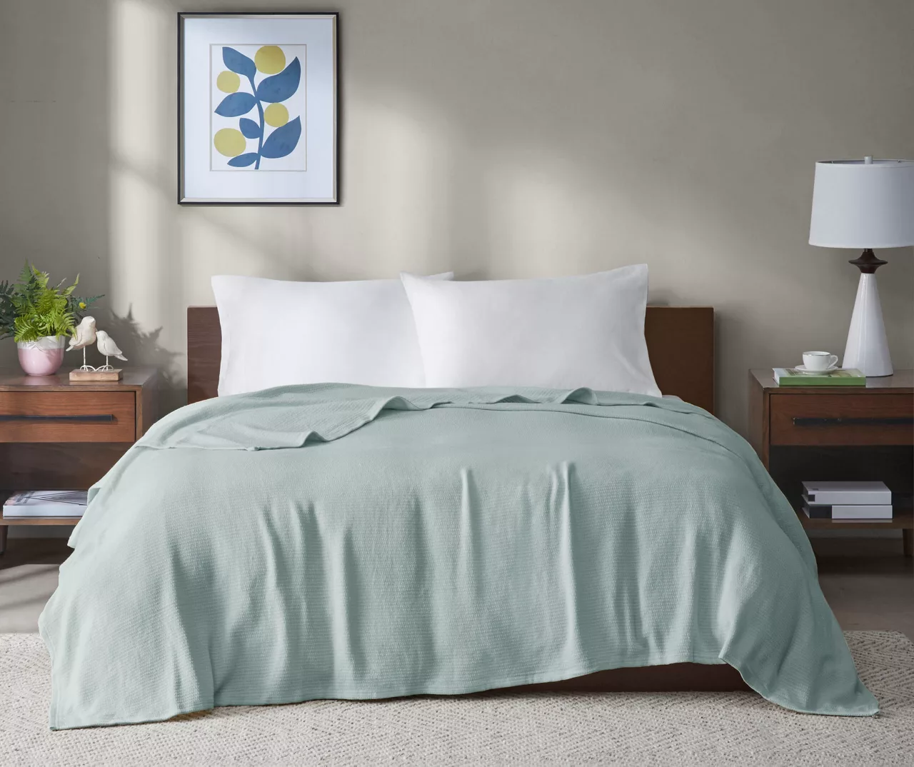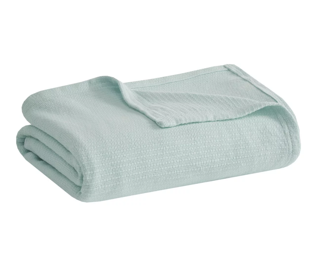 The Freshspun blanket features a charming basketweave textured pattern made from high-quality upland cotton for breathable and cozy coverage that’s perfect for year-round use. It can be used alone on warm nights or layered with other bedding for extra cozy coverage. The solid blue shade is easy to pair with your existing bedroom arrangements whether you opt to use this in a kids’ or master bedroom.
