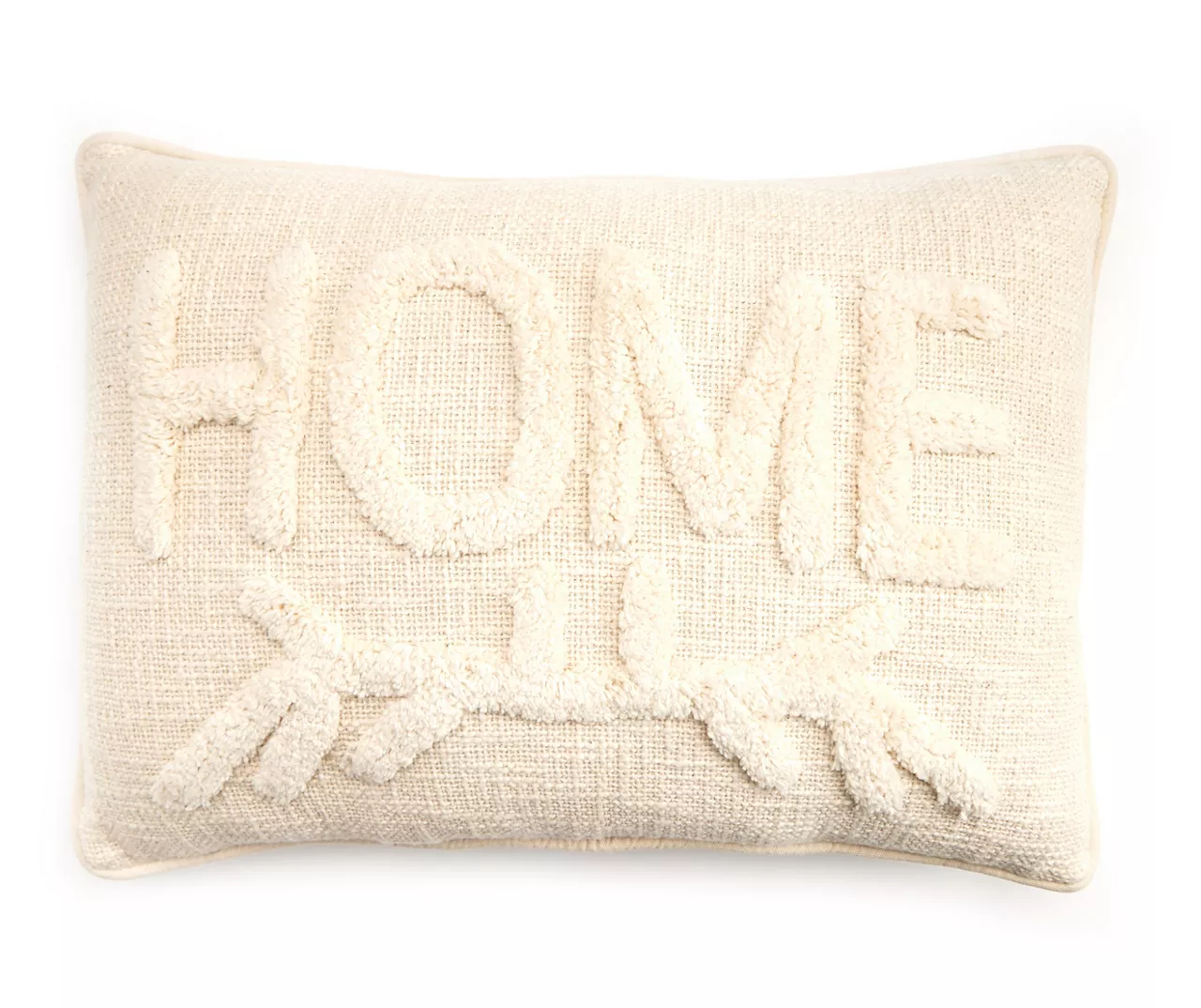 With a tufted “Home” message and embellished accents, this plush throw pillow brings welcoming charm and soft comfort to your bedroom or living space.