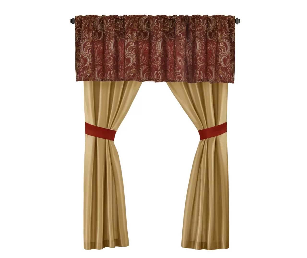 Update your entire room in an instant with this 24-piece bedroom-in-a-bag set from the Isabella collection. An intricate paisley design in a brown and tan palette lends a sophisticated, traditional look to a master or guest bedroom complemented by four window panels, two valances and matching tiebacks. Four decorative pillows use embroidery and pintuck details to create the perfect finishing touches to the top of bed.