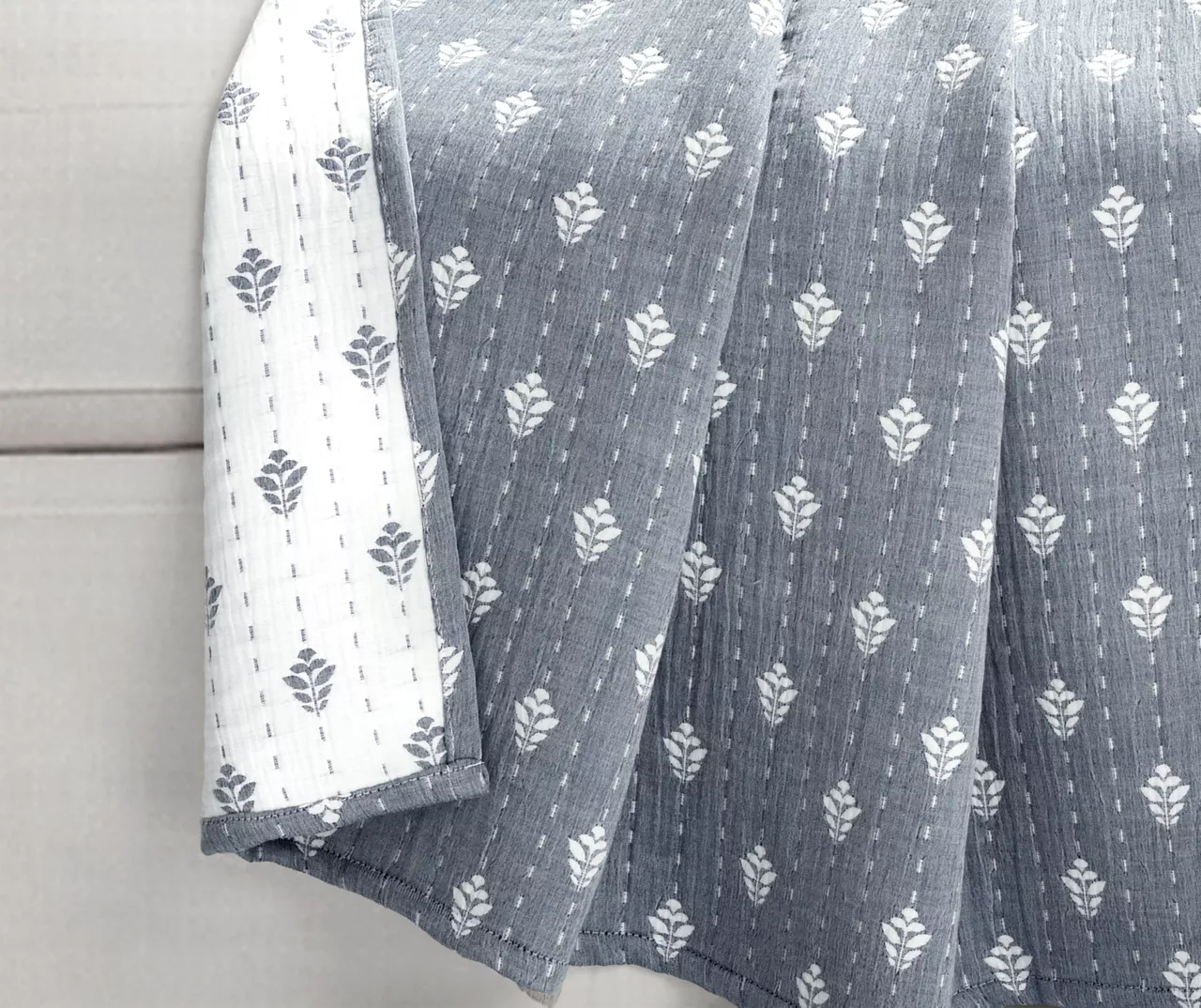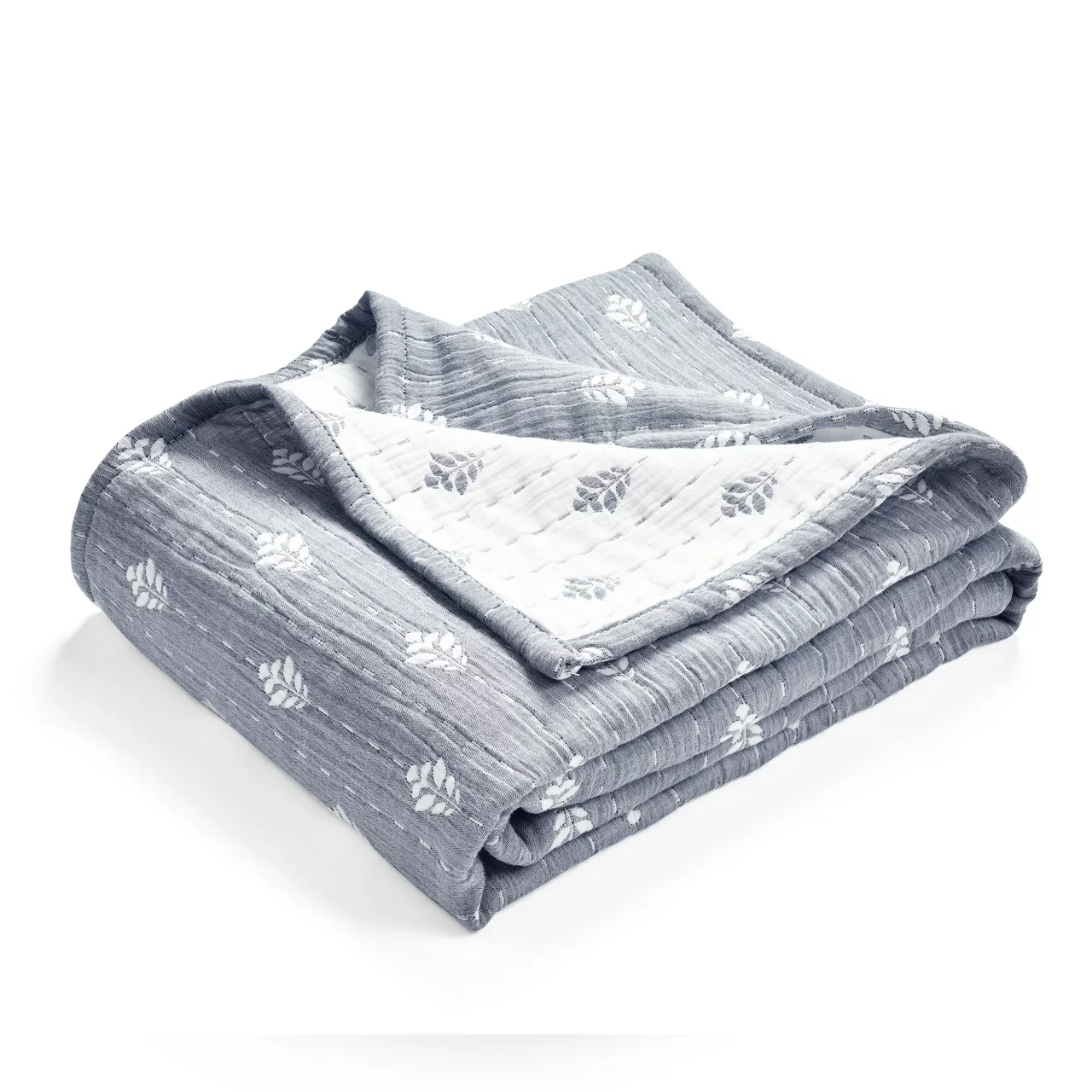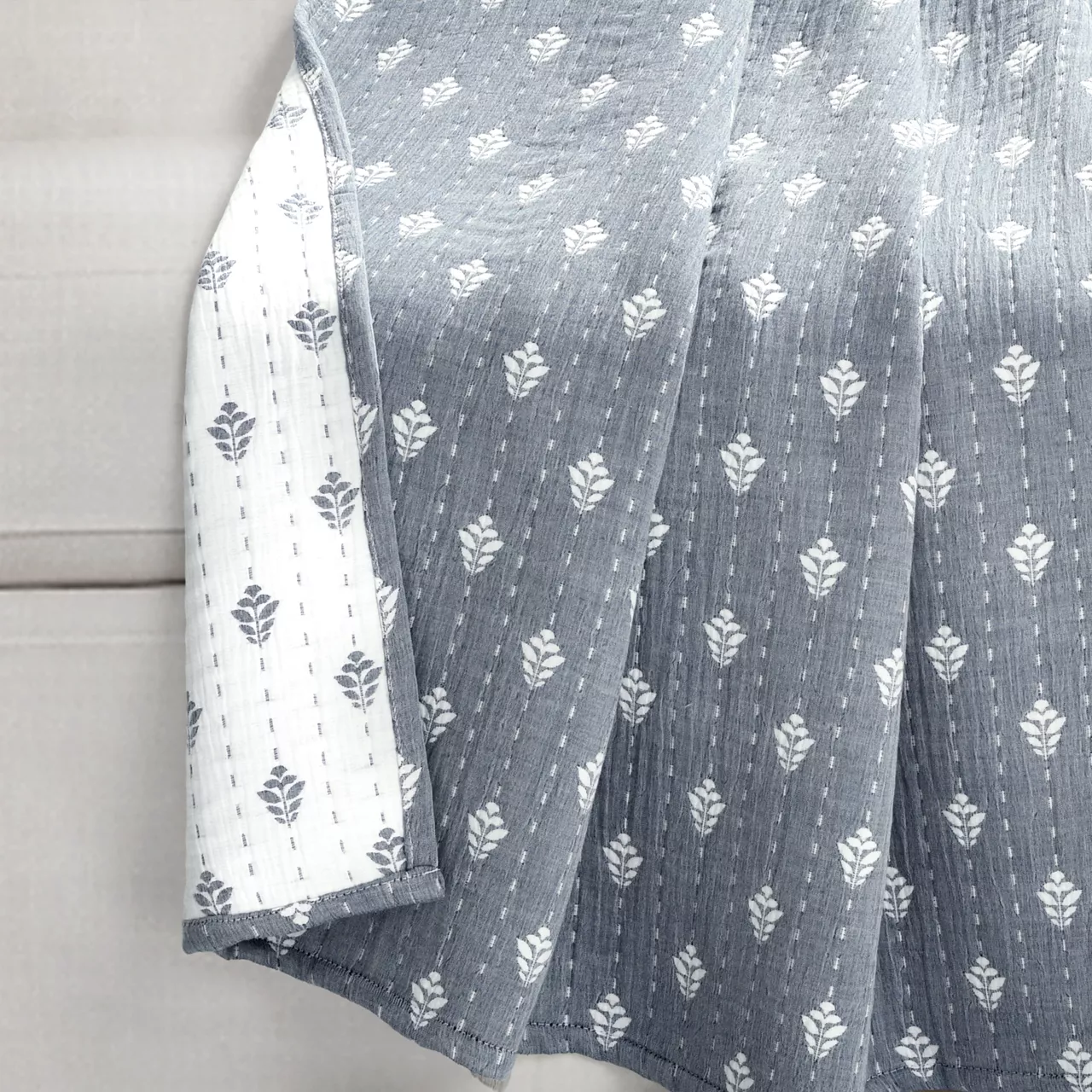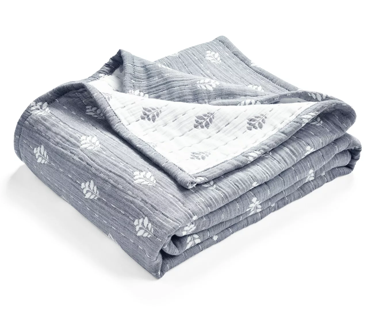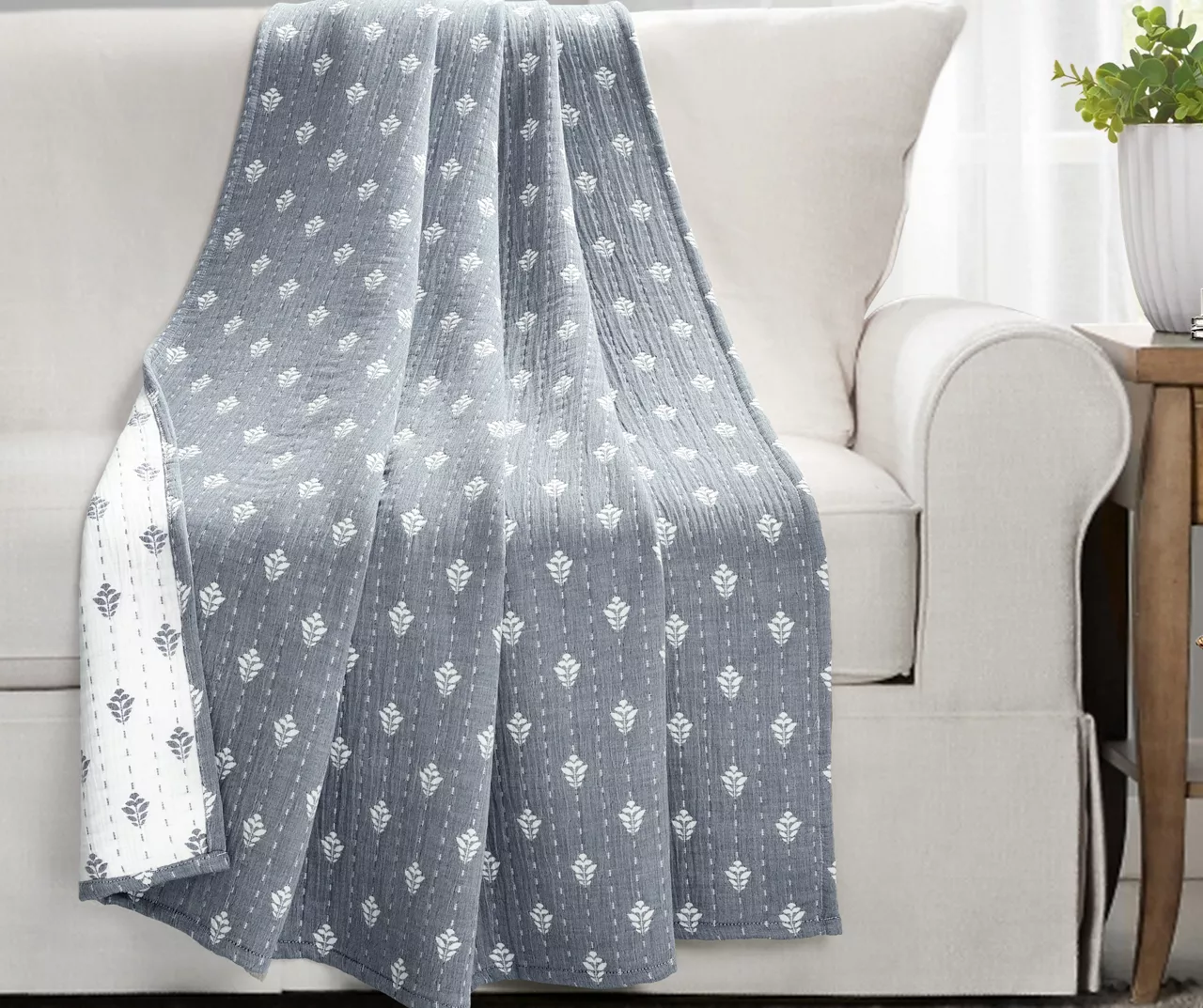 Beautify your living space with the botanical elegance of this jacquard throw decorated with neat stripes of leaves on crinkled fabric for a modern look. Breathable cotton construction ensures you stay warm and comfy while curled up underneath.