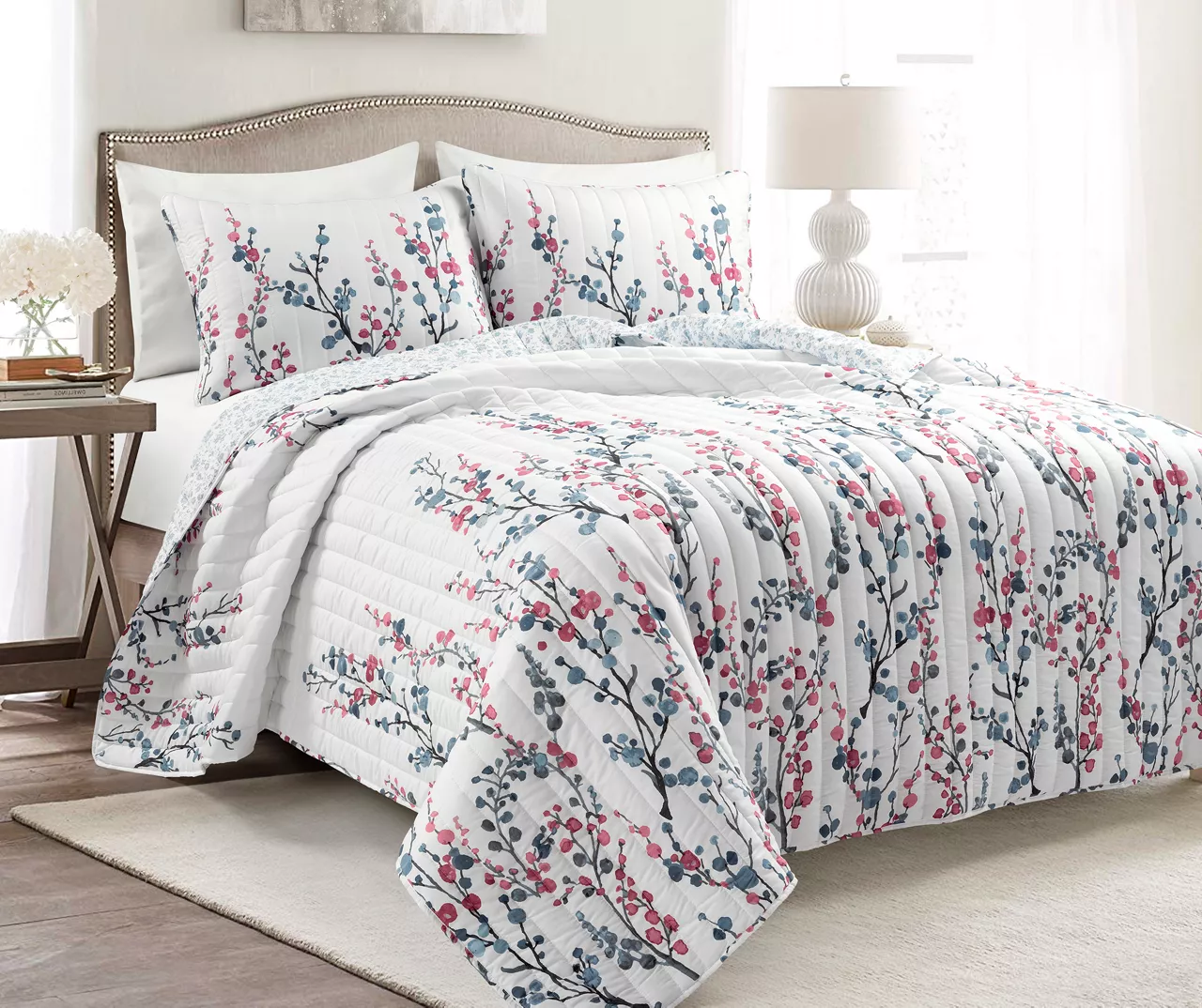 Convert your bedroom or a guest room into a peaceful oasis with this cozy quilt set from Lush Decor. The vines and unique floral patterns on the front along with a delicate floral pattern on the reverse fit well into many design styles. Matching shams complete the look, and soft polyester fabric keeps you cozy through the night.