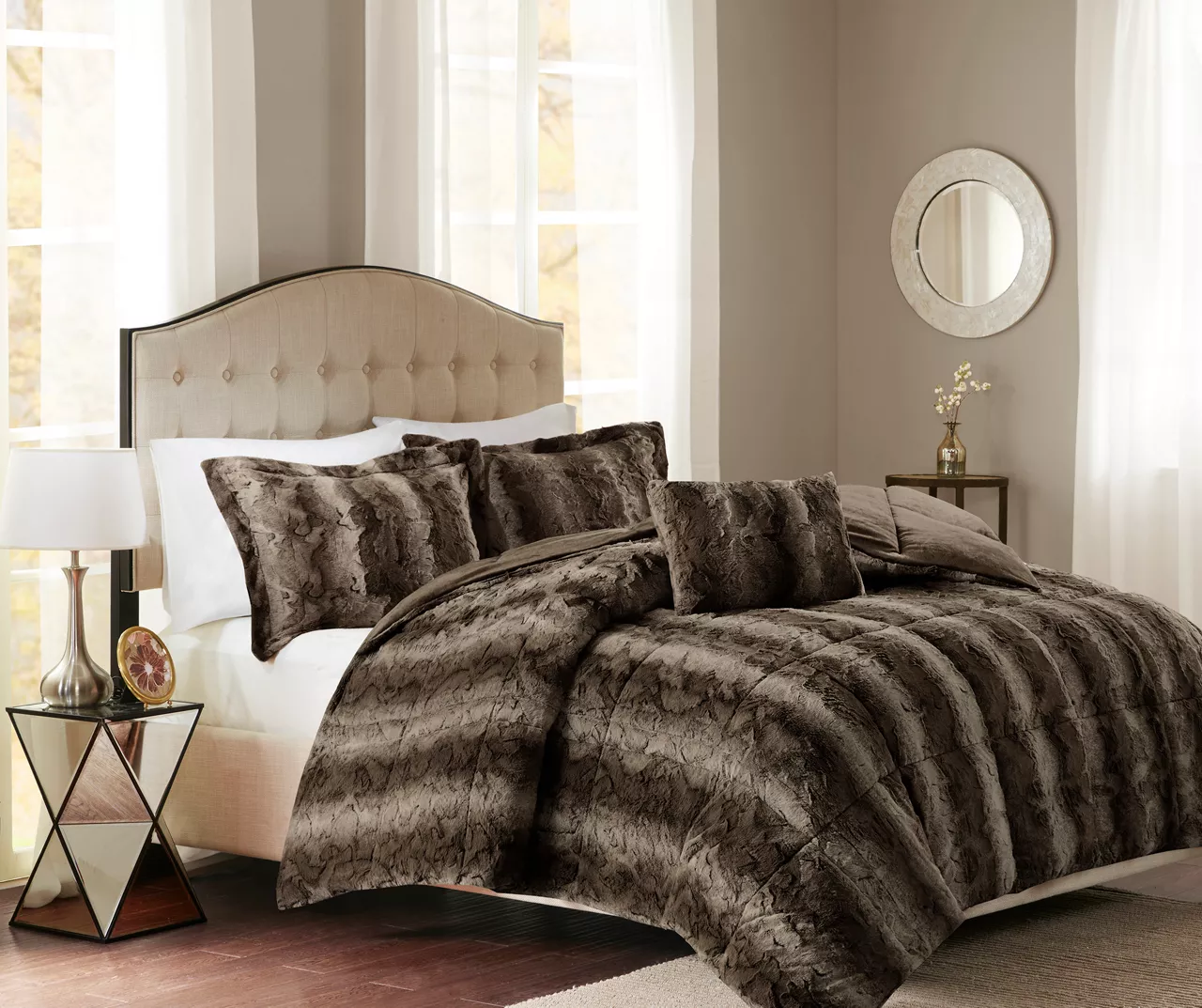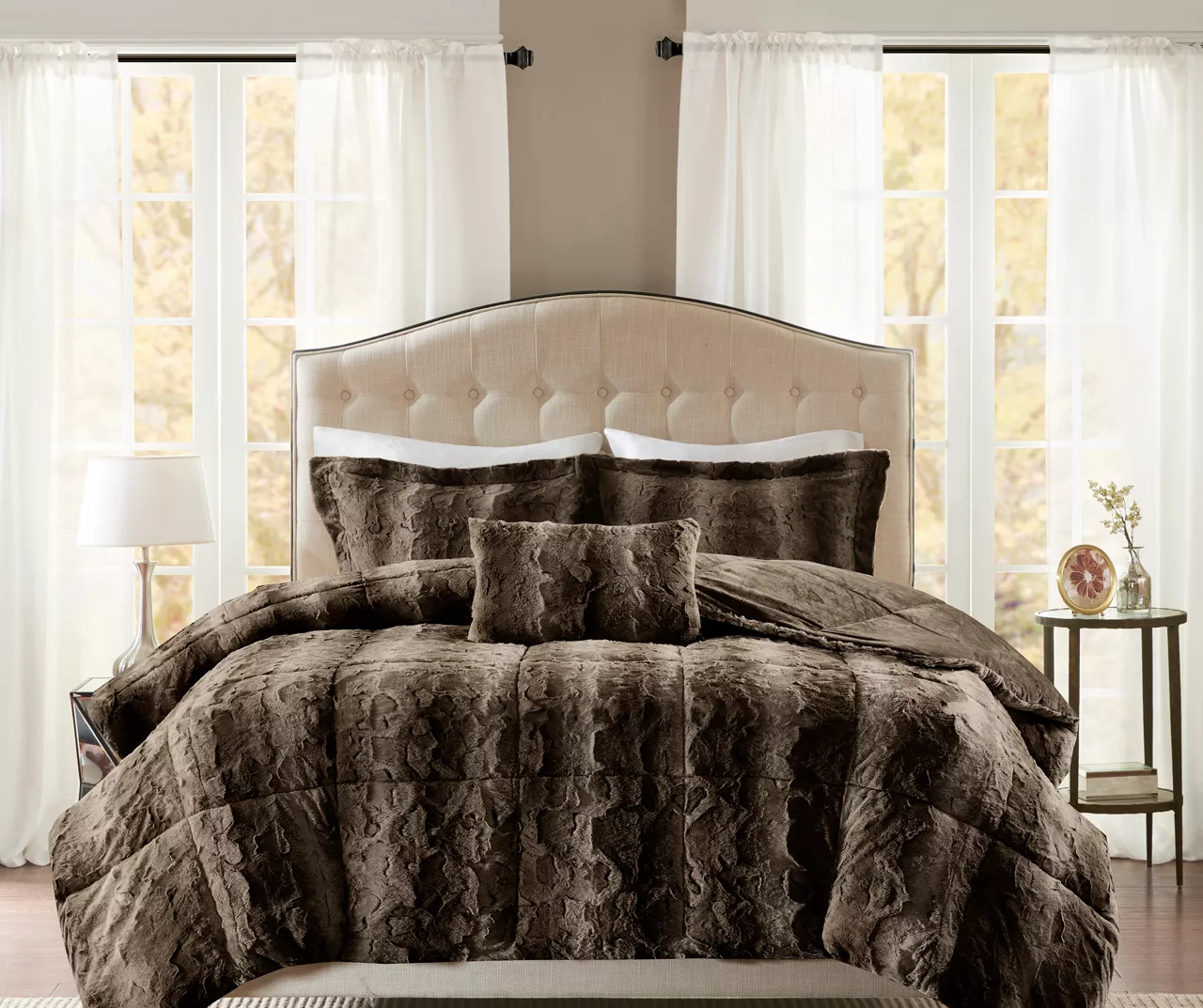 Snuggle up for a luxurious sleep experience with the Marselle comforter set. This lovely set features an ultrasoft faux fur front, reversing to cozy faux mink fabric. The comforter has a hypoallergenic polyester fill for ultimate comfort, and the set is completed with two matching shams alongside a coordinating decorative pillow. Beautify a guest or master bedroom with the modern glam and dreamy warmth of this cushy comforter set.