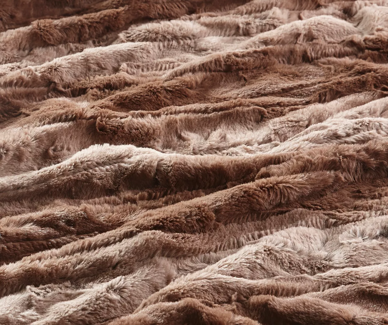 - Material: Face: face and back print brushed long fur, 100% polyester;