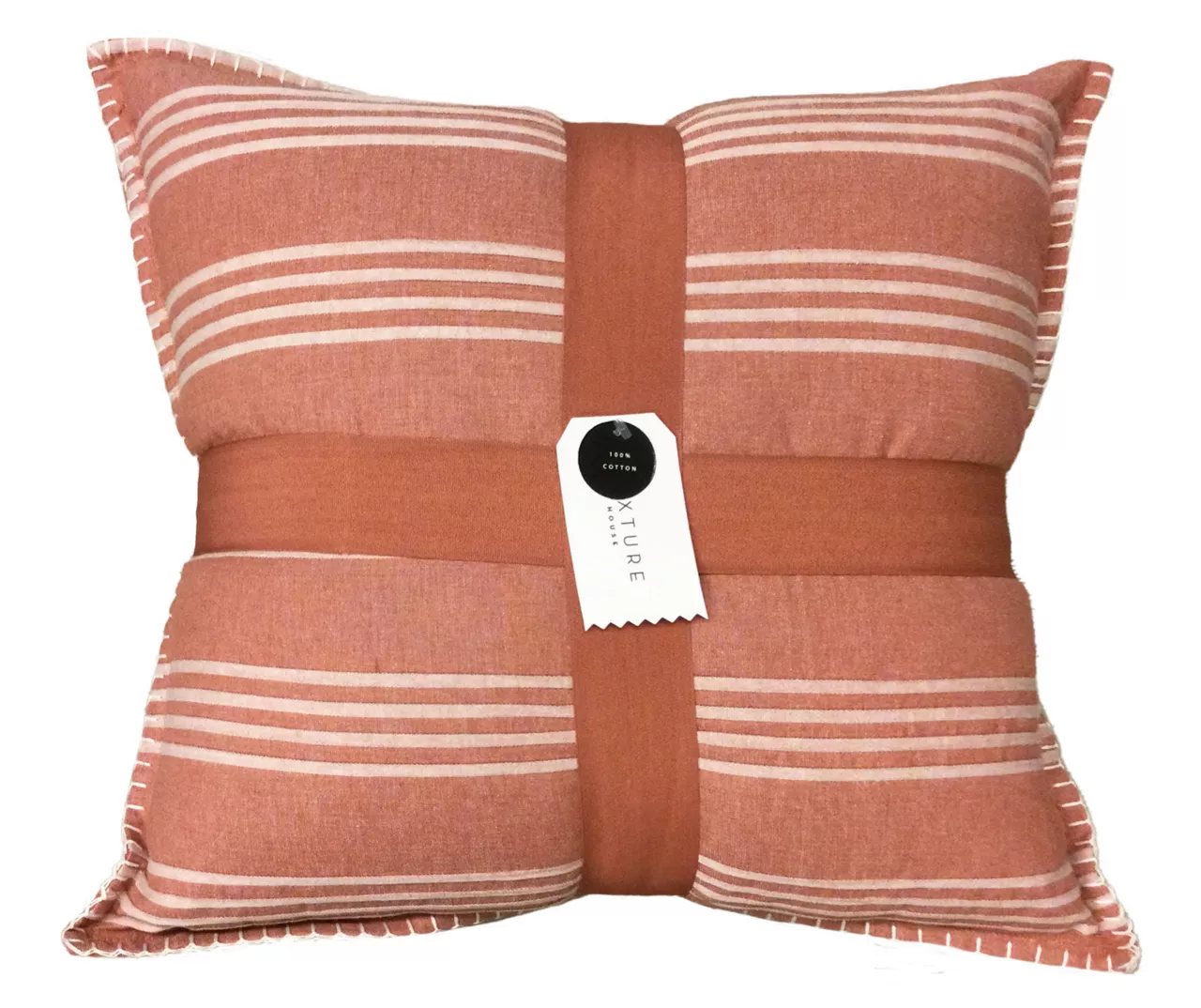 Freshen your living space with the plush comfort and modern designer style of this Myra throw pillow. The front is defined by grouped rows of stripes, and the back features a simple solid washed coral hue. Contrast stitching along the trim makes this pillow a chic accent piece for any bed, sofa or accent chair in your home.