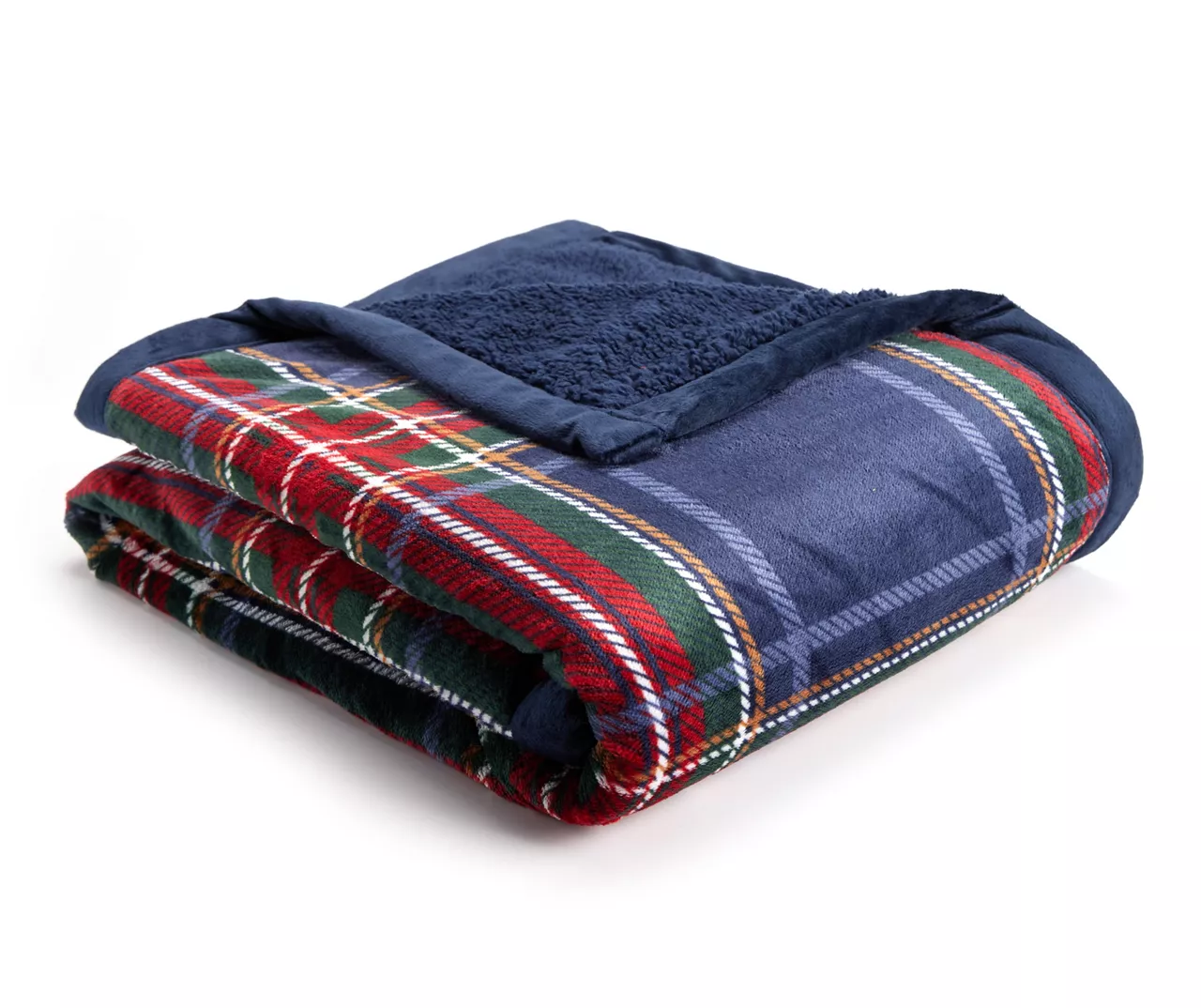 When the days and evenings are a little extra chilly, you can stay toasty-warm in seasonal style while snuggled under this soft sherpa throw featuring a classic plaid print.