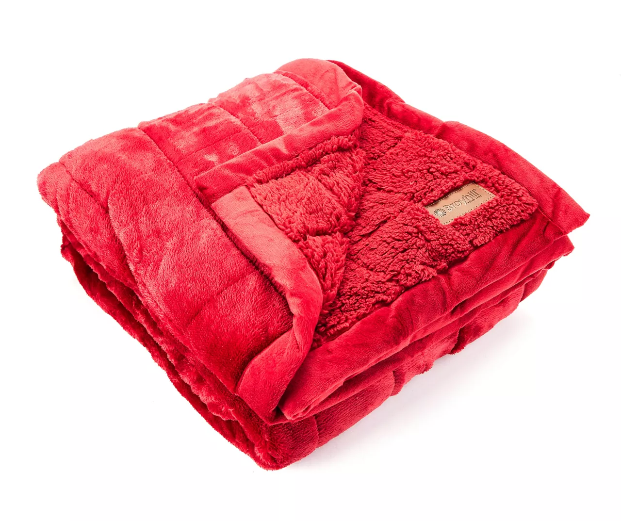 When the days and evenings are a little extra chilly, you can stay toasty-warm in seasonal style while snuggled under this soft sherpa throw featuring a textured box quilt design.