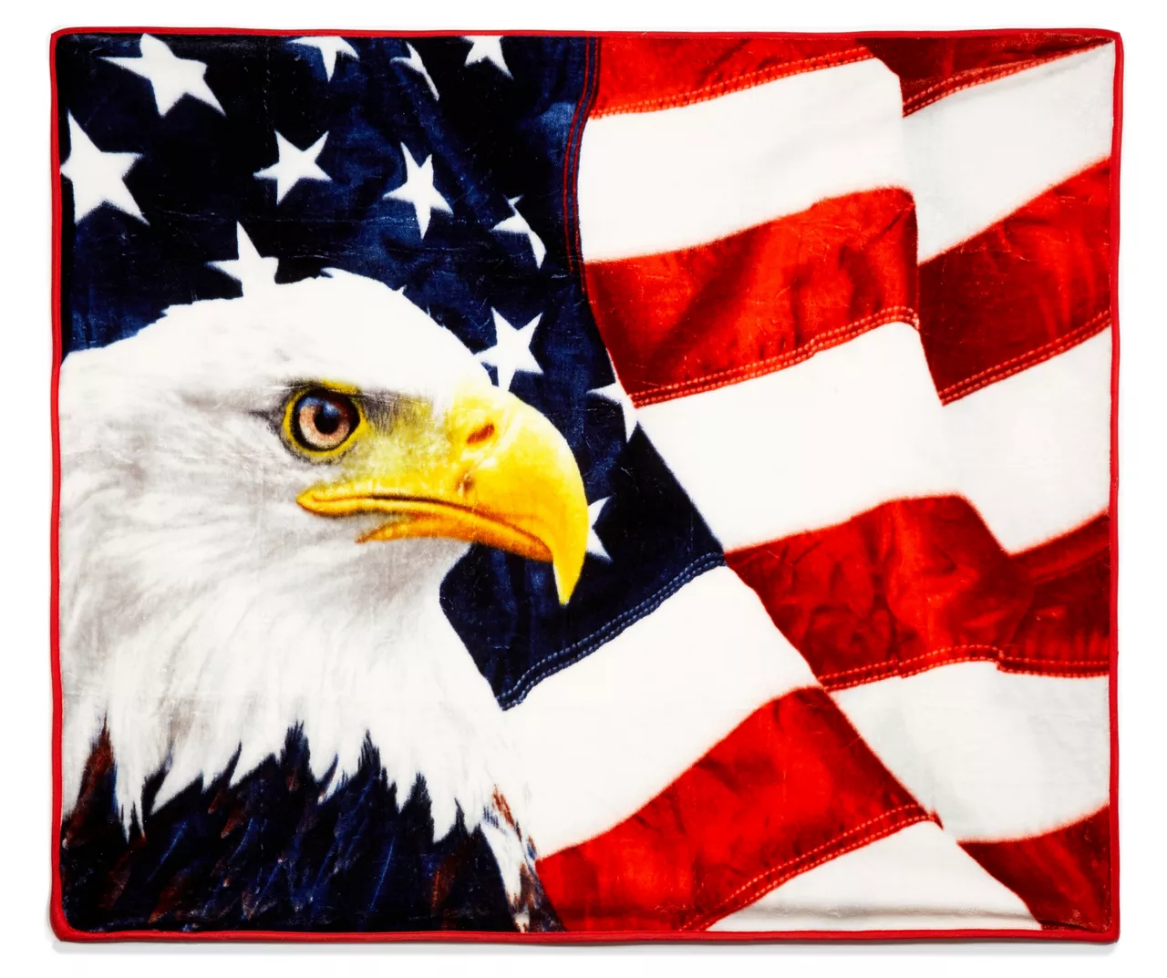 Stay warm and comfy in patriotic style when you add this plush throw to your home or vehicle. The ultra-soft material features a US flag and eagle print in rich and vivid colors that adds personality to your cozy time.