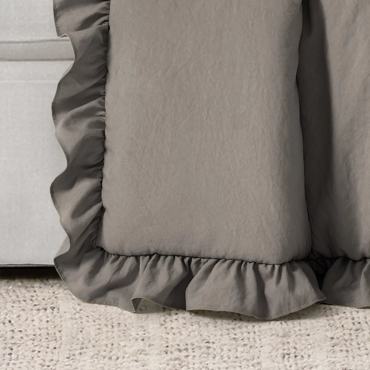 Give your living space a little playful panache with the crinkled texture and dramatic ruffled trim of this cozy throw. It helps keep you warm while also effortlessly complementing your space thanks to a versatile solid gray hue.