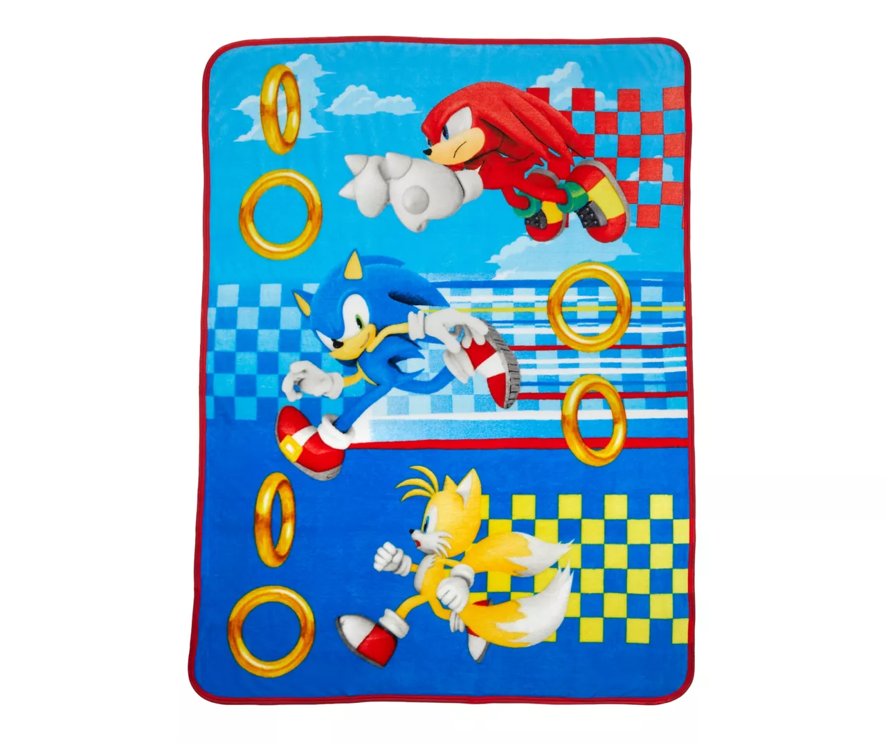 This cool and colorful “Rings For All” patterned plush throw blanket features Sonic, Tails and Knuckles from the popular SEGA videogame franchise. The lightweight and easy to carry throw blanket is the perfect cuddly companion for sleepovers, camping, traveling and playing.