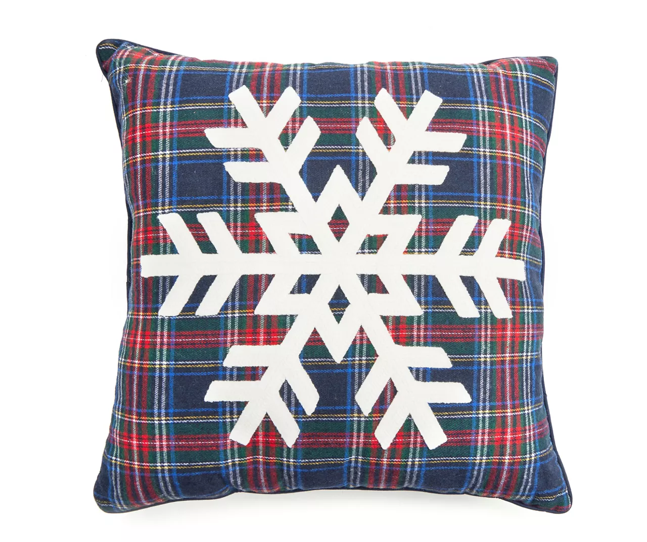 Add festive flair to your home décor with this lovely throw pillow from the Santa’s Workshop collection. A large snowflake sits over a navy and red plaid print and the plush fill brings a spot of comfort to any sofa, accent chair or bed.