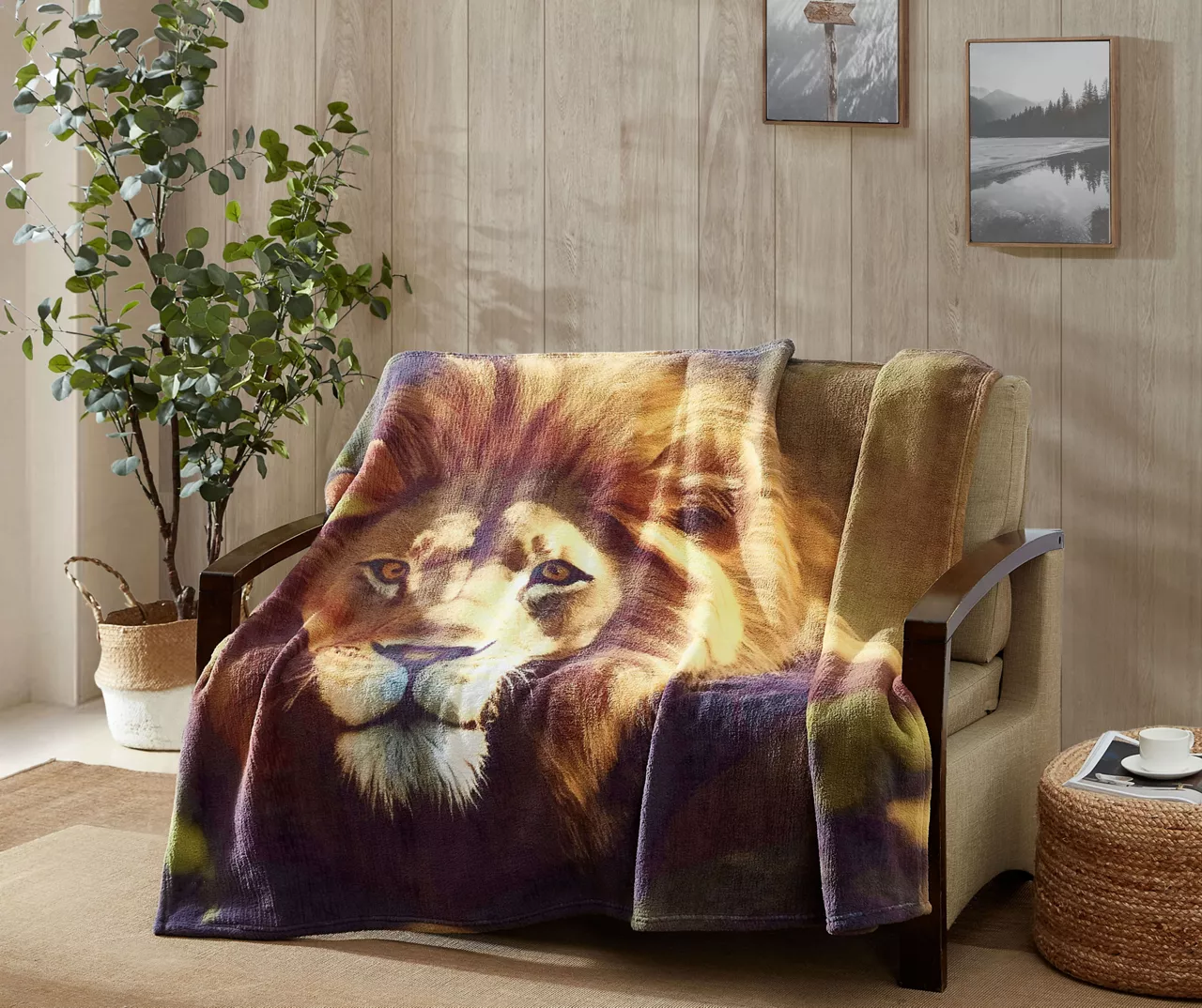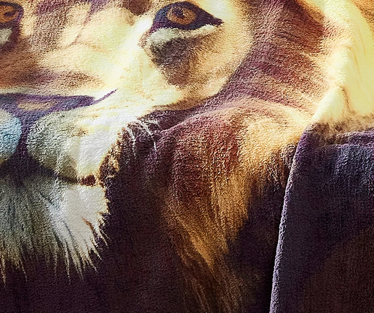Stay warm and comfy in sweet style when you add this plush throw to your home or vehicle. The ultra-soft material features a painted lion print in rich and vivid colors that adds personality to your cozy time.
