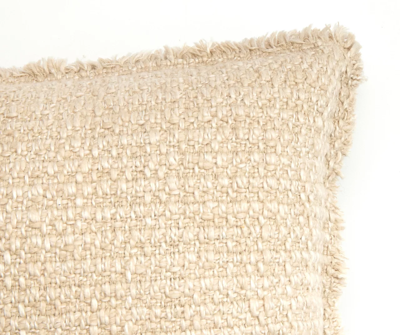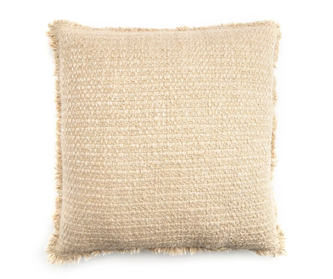 Elevate your home with the elegant design and soft comfort of this plush throw pillow. The front features a chic tweed texture with a smooth backing, and a fringed trim around the edges adds to the playful flair.