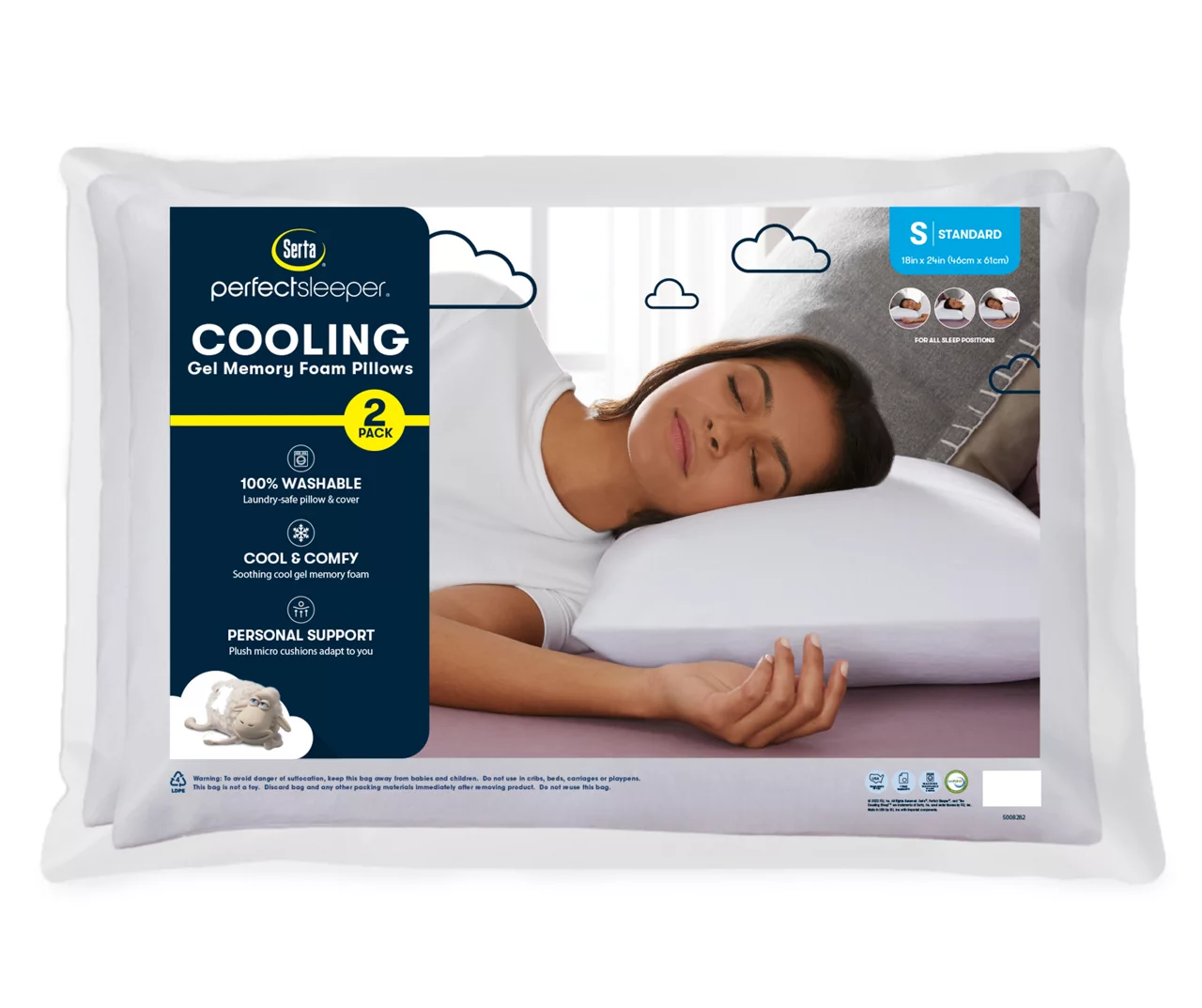 Refresh your sleep comfort with these wasahable cooling pillows from Serta Perfect Sleeper. Featuring soothing gel memory foam and instantly cool covers, you’ll get twice the cooling comfort while you rest. Premium quality memory foam micro cushions are shapeable, adapting to your curves with plush support. Both pillows are machine washable for a deeper clean and more refreshing sleep.